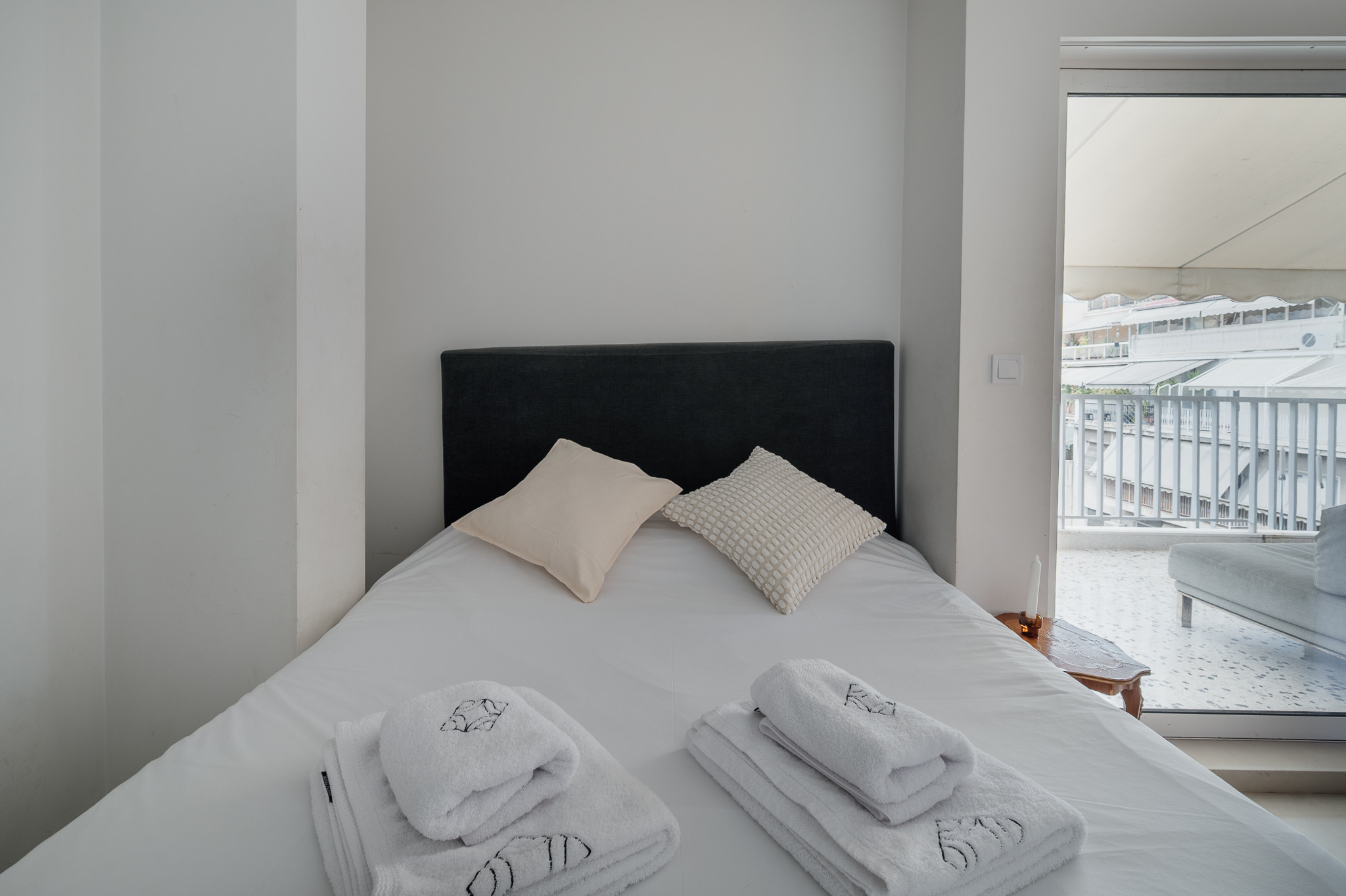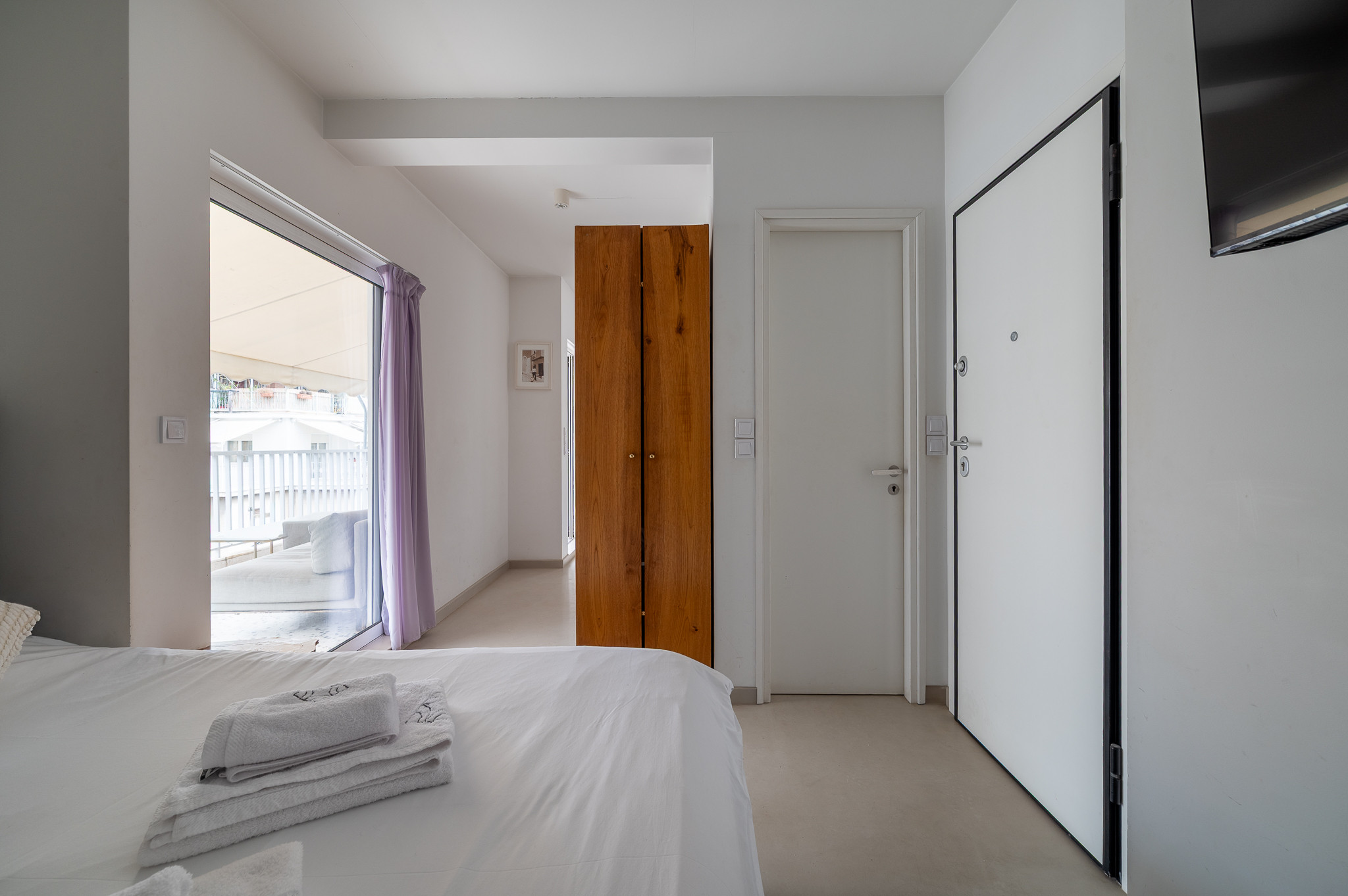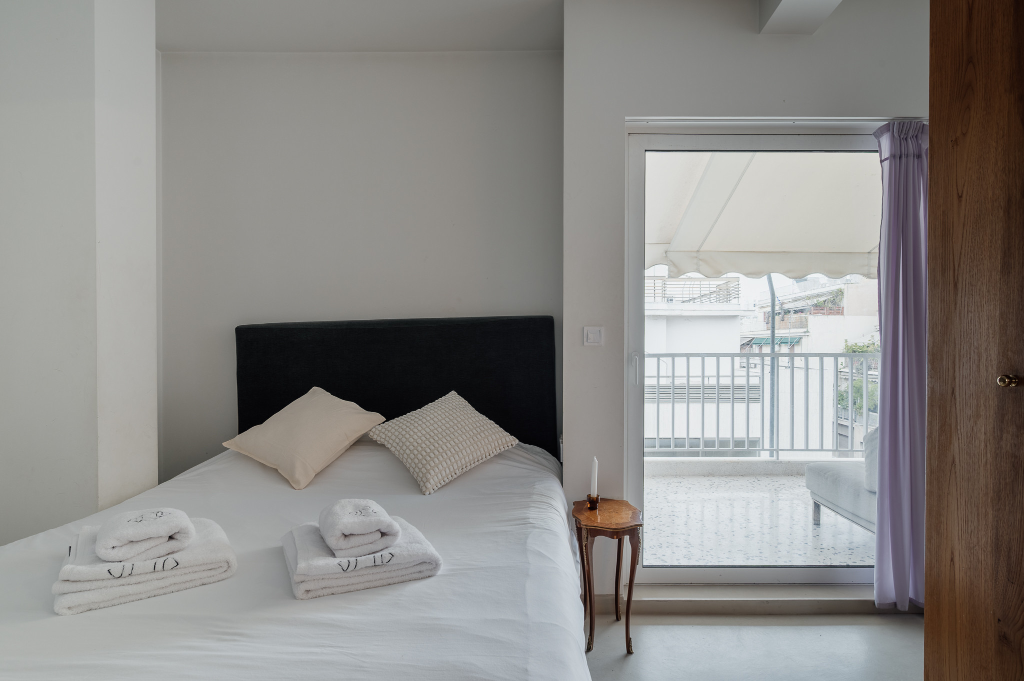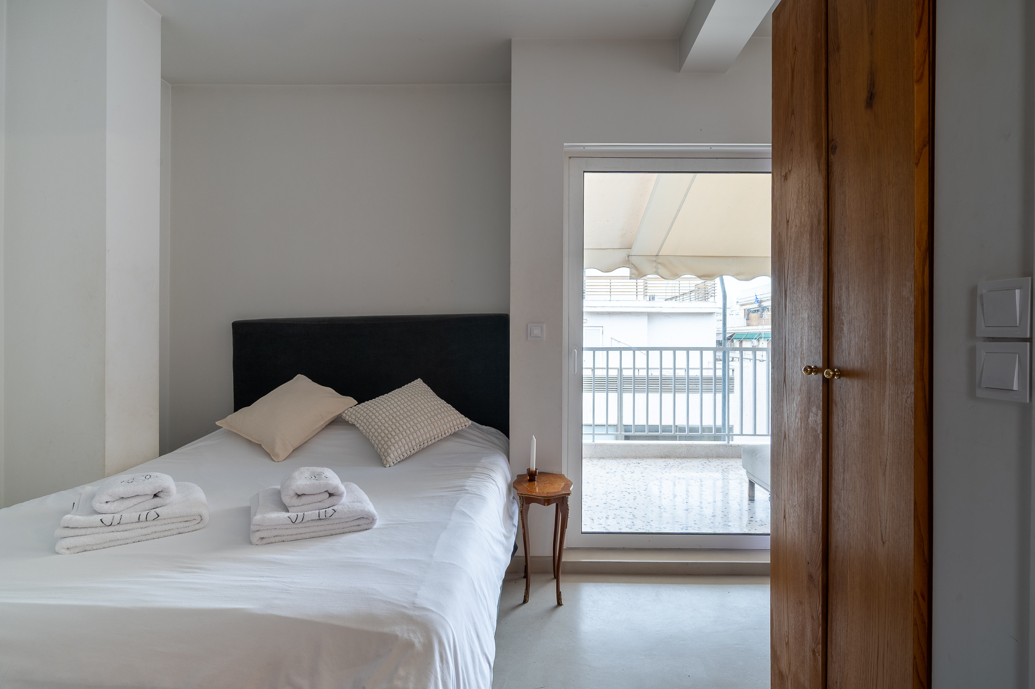 Though intimate and compact (27sqm), Elli is designed to feel open and airy. The highlight of the studio is undoubtedly the expansive private balcony, which serves as a grand extension of the living area. It is the ideal spot to soak up the Athenian sun or enjoy a glass of wine while gazing at the city skyline.