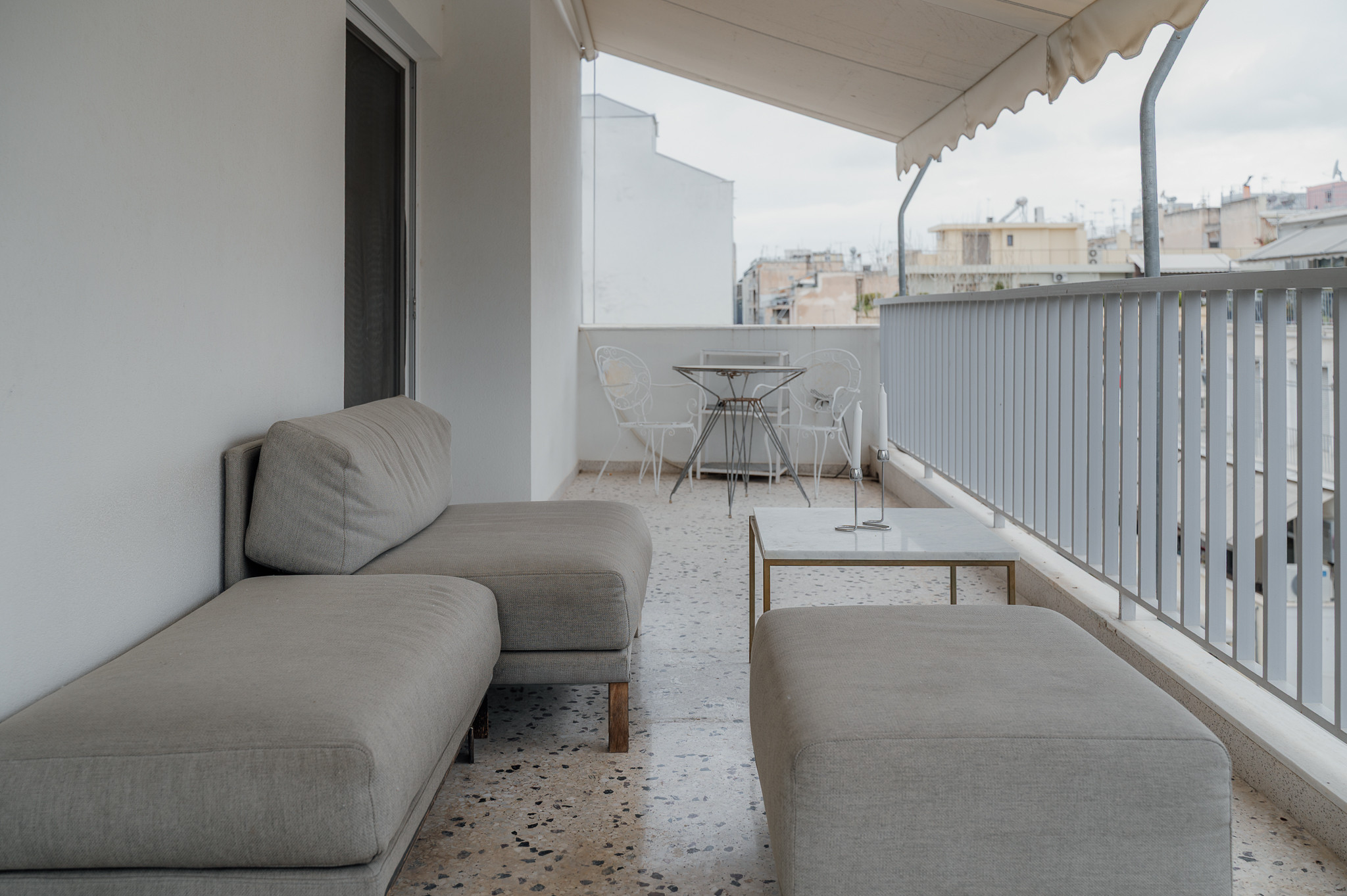 City Views: Large windows and the terrace offer authentic views of the Athens cityscape.